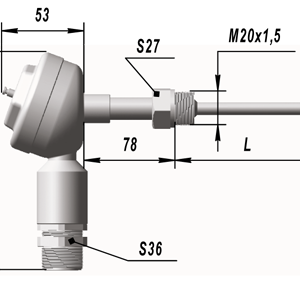 для контроля температуры продуктов сгорания природного газа на агрегатах ГПА-25/76, а также на импортных агрегатах компрессорных станций магистральных газопроводов при скорости потока газа перед защитным экраном рабочего конца термопреобразователя до 70м/сек.