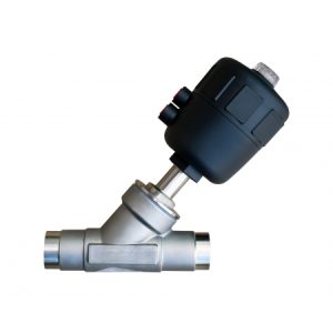 АСТА Р12 – угловой запорно-регулирующий клапан из нержавеющей стали, управляемый поршневым пневматическим приводом, предназначен для регулирования или перекрытия потока рабочей среды в трубопроводе. Срабатывание клапана происходит за счёт давления сжатого воздуха, подаваемого в пневмопривод, а возврат в исходное положение – за счет силы упругой деформации пружины, сжимающейся при срабатывании клапана.