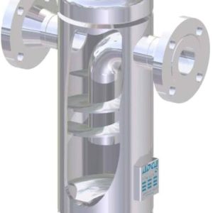 S25/SZ – центробежный сепаратор, удаляющий влагу из паровых трубопроводов, а также из систем сжатого воздуха. Пар или сжатый воздух, проходя через сепаратор под действием центробежных сил и эффекта закручивания потока, теряет частицы влаги, которые, отделяясь от основного потока вместе с частицами ржавчины, грязью и сварочным градом,удаляются через дренажное отверстие в нижней части сепаратора. Для автоматического удаления отделившегося конденсата на выходе из сепаратора необходимо установить автоматический поплавковый конденсатоотводчик. Присоединение сепаратора S25/SZ фланцевое.