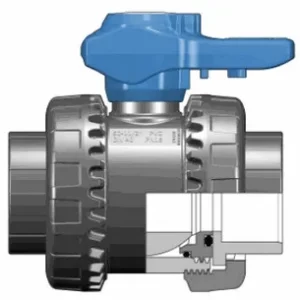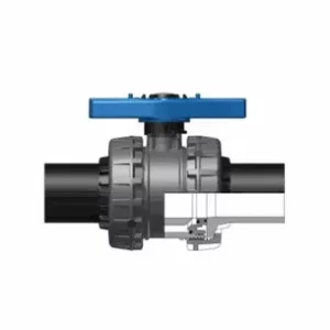Трехходовой шаровой кран ПВХ L типа для распределения и смешивания потока с втулочными окончаниями под клеевое соединение – d32 (DN25). Уплотнение из EPDM. Возможность установки пневматических или электрических приводов. Оснащен системой блокировки гаек для эксплуатации в условиях вибраций. Рукоятка оснащена извлекаемым ключом для регулировки опоры шара.