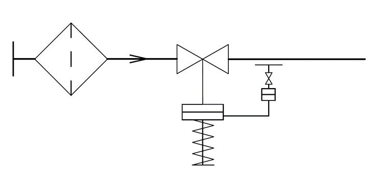 При использовании регулирующего блока РПС регулятор функционирует в режиме регулятора давления «после себя», который предназначен для автоматического поддержания заданного давления рабочей среды на выходе из регулятора вне зависимости от ее расхода.