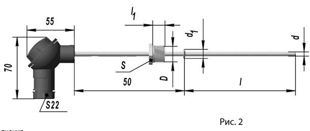 КОНСТРУКТИВНОЕ ИСПОЛНЕНИЕ С -00 ПО -199 определяет размеры датчика (см.табл.1).