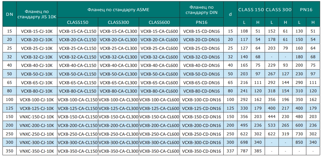 Фланец: DIN PN16 ASME CLASS 150/300/600 JIS 10K