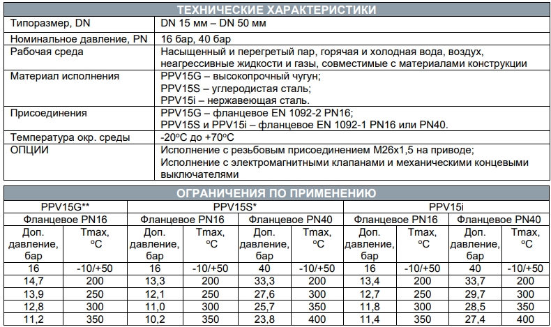 ADCATrol PPV15 – это серия односедельных двухходовых отсечных on/off клапанов с поршневым пневматическим приводом для перекрытия потоков. Клапаны PPV15 подходят для использования с наиболее распространенными технологическими жидкостями, такими как: пар, перегретая вода, воздух, нейтральные газы и масла. Основные свойства Прима Трейдинг Разработка, производство и поставки оборудования для инженерных систем Регулирующие клапаны Техническая информация Клапан отсечной пневматический PPV15 (DN 15 – DN 50) STEAM EQUIPMENT