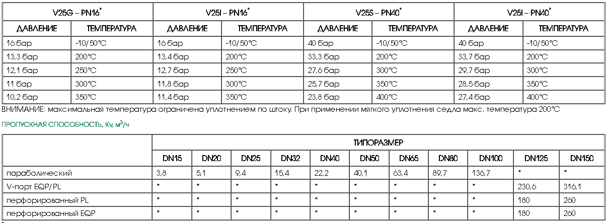 V25 – односедельный, двухходовой прямоходный регулирующий клапан. Клапан V25 специально спроектирован для точной регулировки любых технологических процессов. Широкий круг применений позволяет использовать для большинства технологических сред, таких как холодная и перегретая вода, водяной пар, воздух и другие не агрессивные жидкости и газы.