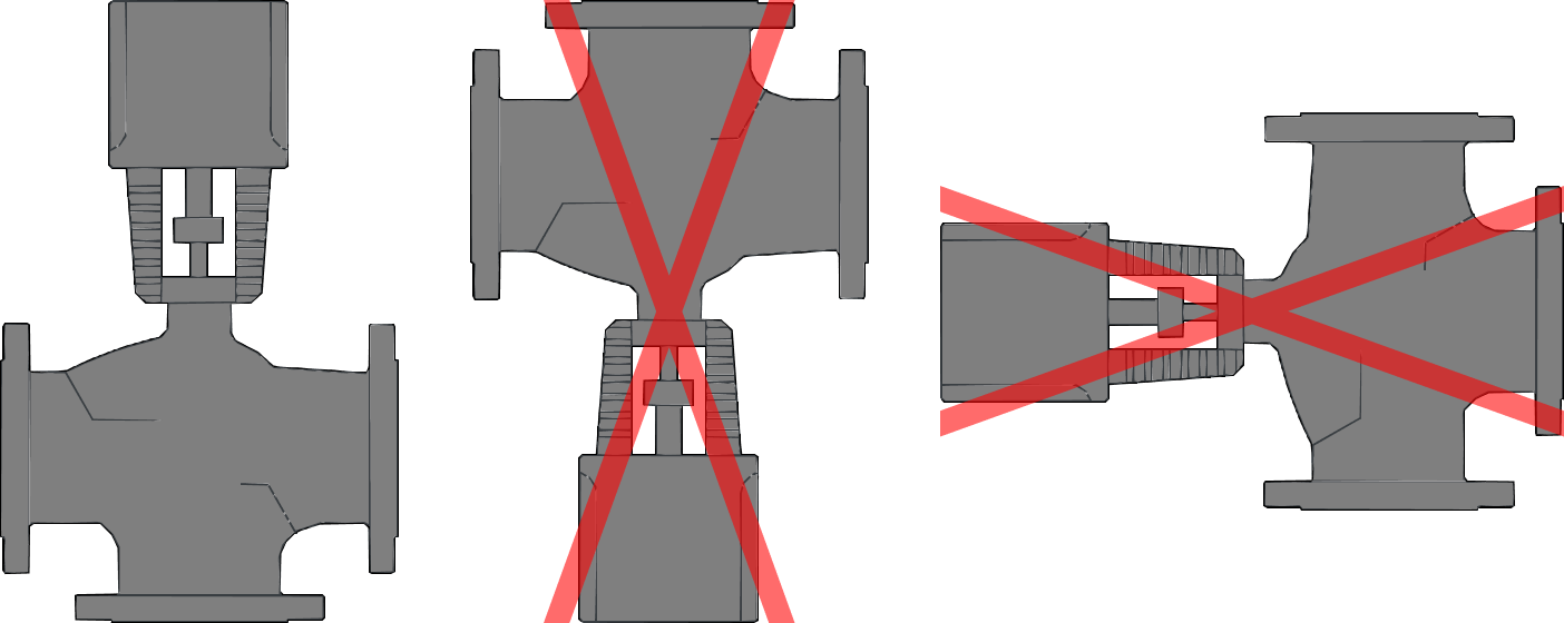 Разделительный трехходовой клапан имеет один входной патрубок (АВ) и два выходных (А, В). Применяется для количественного регулирования за счет разделения потока теплоносителя, в системах подогрева воды систем ГВС, а так же в узлах обвязки воздухонагревателей и воздухоохладителей. Используется для разделения потока теплоносителя между двумя контурами системы отопления. Этот тип клапана позволяет регулировать количество тепла, поступающего в каждый из них, что обеспечивает более точную настройку температуры |