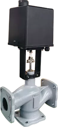Разделительный трехходовой клапан имеет один входной патрубок (АВ) и два выходных (А, В). Применяется для количественного регулирования за счет разделения потока теплоносителя, в системах подогрева воды систем ГВС, а так же в узлах обвязки воздухонагревателей и воздухоохладителей. Используется для разделения потока теплоносителя между двумя контурами системы отопления. Этот тип клапана позволяет регулировать количество тепла, поступающего в каждый из них, что обеспечивает более точную настройку температуры |