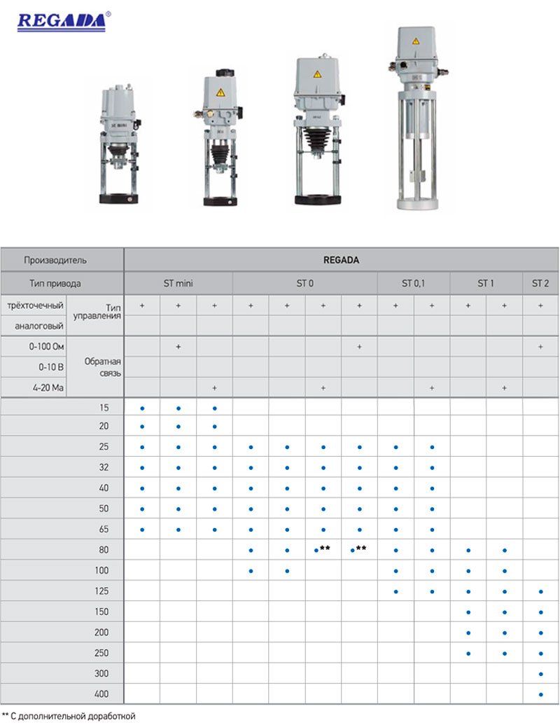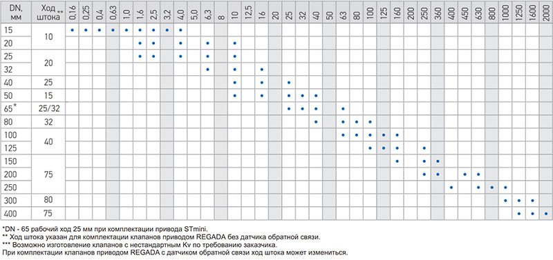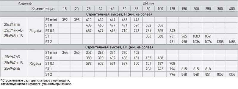 Услованя пропускная способность, Kvy, м3/ч.Строительная длина, L (мм)Вес (кг., не более)Строительная высота (мм, не более)Применяемые приводыРазмещение клапана на трубопроводе