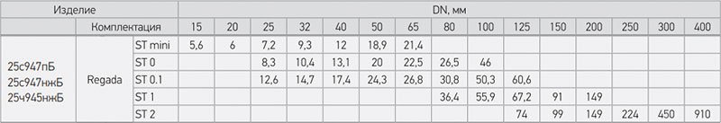 Услованя пропускная способность, Kvy, м3/ч.