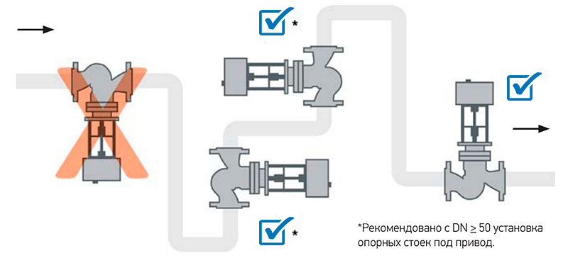 Размещение клапана на трубопроводе