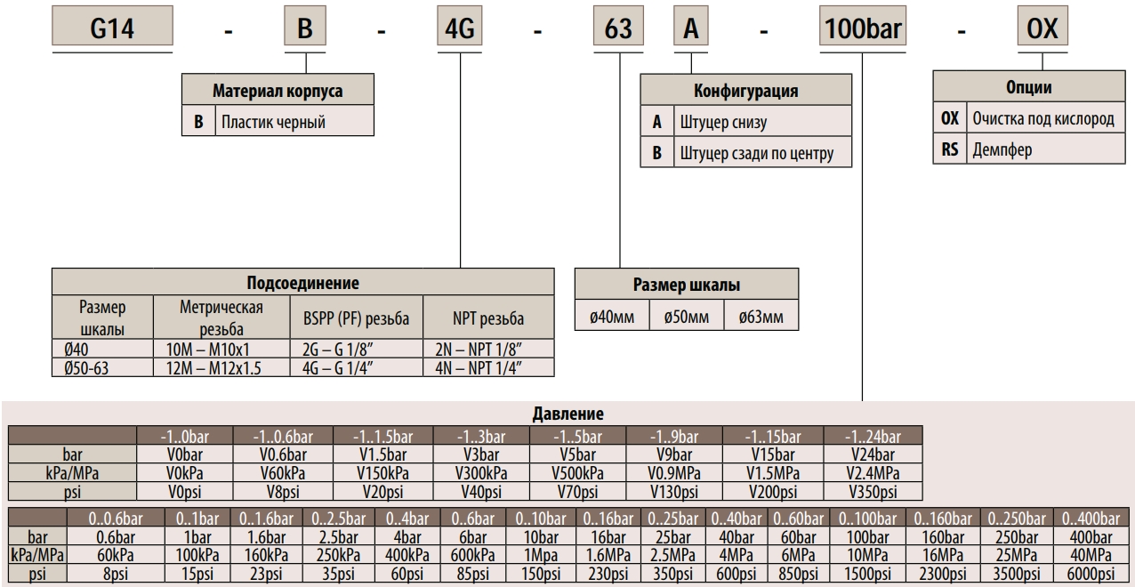 Манометр с трубкой Бурдона A-FLOW G14-B-2G-40B