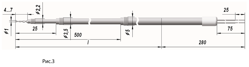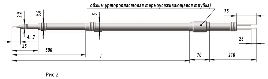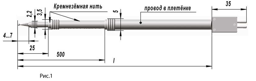 Термопреобразователь изготовлен из кабеля в кремнеземной нити. Для повышения износостойкости на кабель надета металлическая плетенка.