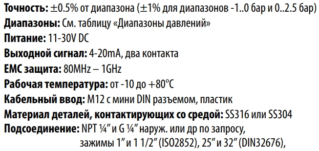 Преобразователь применяется для измерения давления жидкостей и газов. Широкий выбор диапазонов давлений.