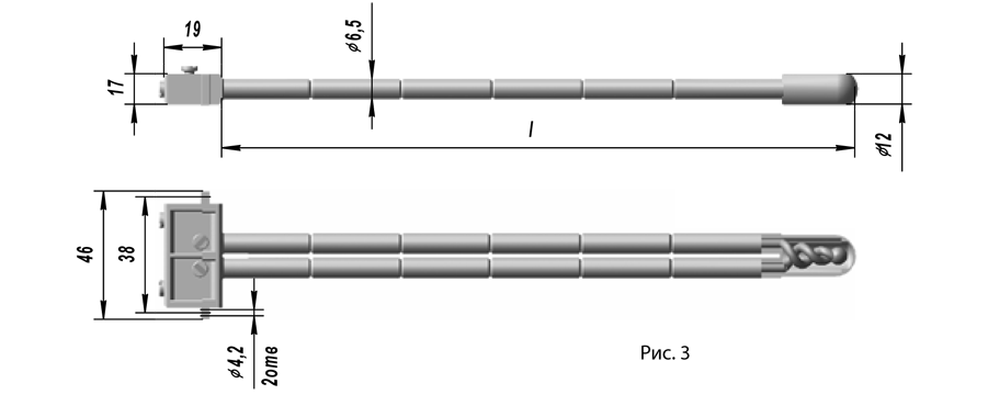 Диапазон измеряемых температур: -40…+1000°С; с изоляцией кремнеземной нитью: -40…+600°С. для ТХА 9419, рис.1 или рис.2: Класс допуска – 1: Проволока ДКРХМ 1,2 НХ 9,5-НМц АК 2-2-1 1; Класс допуска – 2: Проволока ДКРХМ 1,2 НХ 9,5-НМц АК 2-2-1 2; для ТХК 9419: Проволока ДКРХМ 1,2 НХ 9,5-МНМц 43-0,5.2 ГОСТ1790; Показатель тепловой инерции: 20 с Исполнение рабочего спая: изолирован Диаметр термоэлектродов: Ø 3,2 мм Изоляция: керамическими бусами |