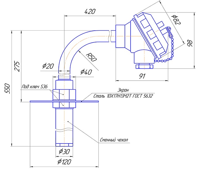 Преобразователь выполнен разборной конструкции, что позволяет в процессе эксплуатации производить замену чехла.