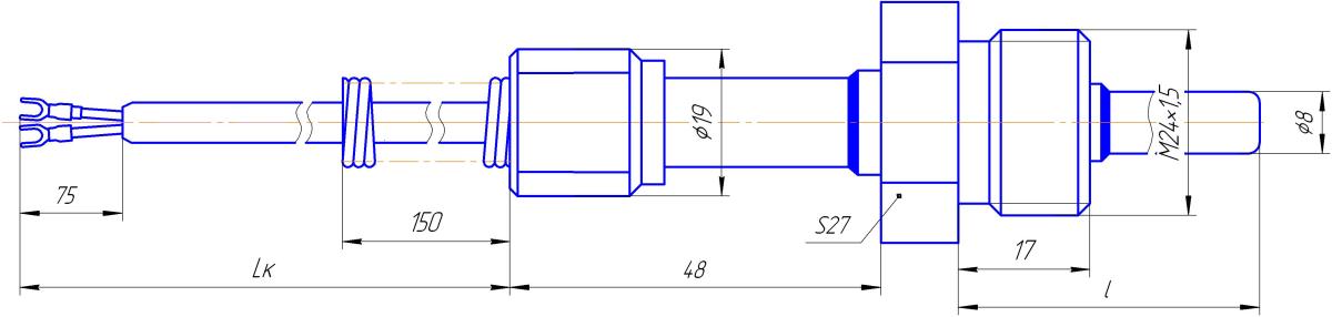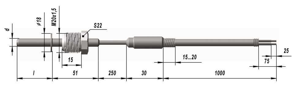 Рис.2 ТХА 0308. Материал защитной арматуры 12Х18Н10Т. Диапазон измеряемых температур -40…+600 °C |