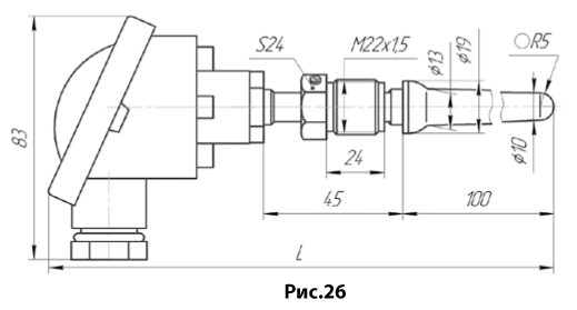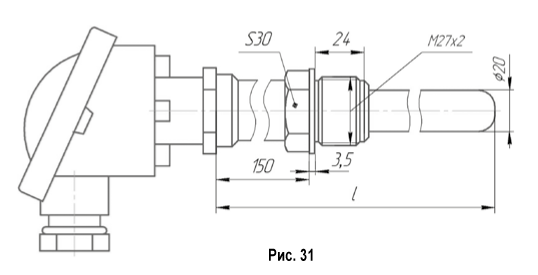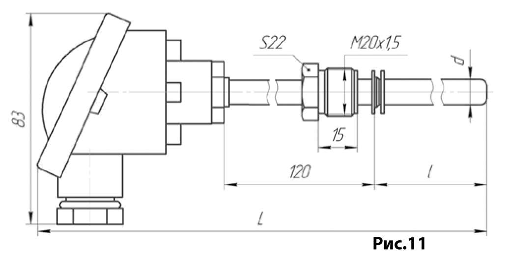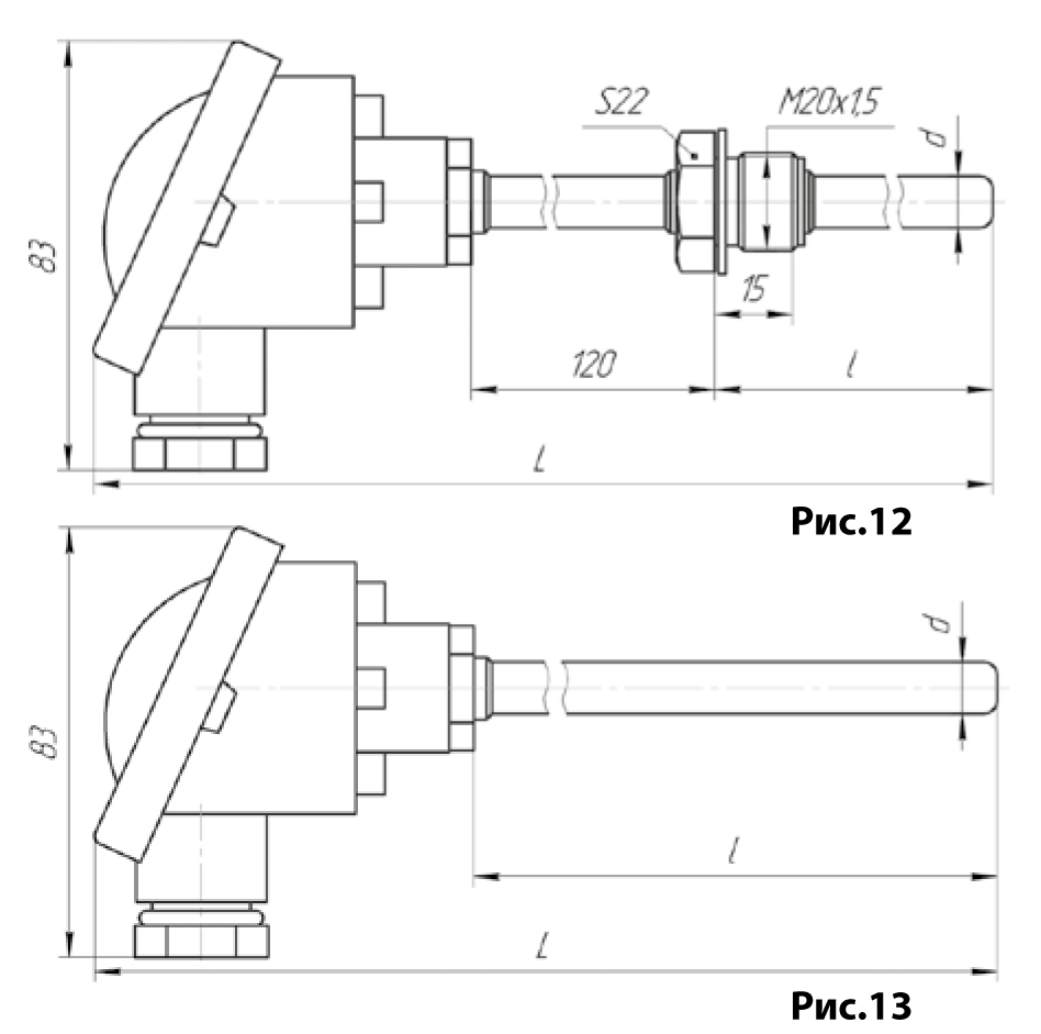 ** только для вставки термометрической ДДШ5.186.138 с одним или двумя чувствительными элементами |