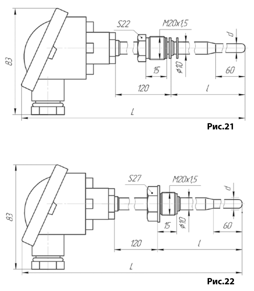 | для рис. 20: Общая длина преобразователя L, мм (L=85+l) | ||||||