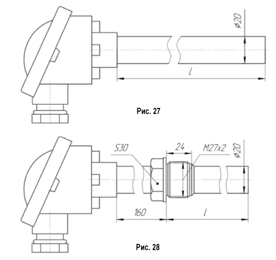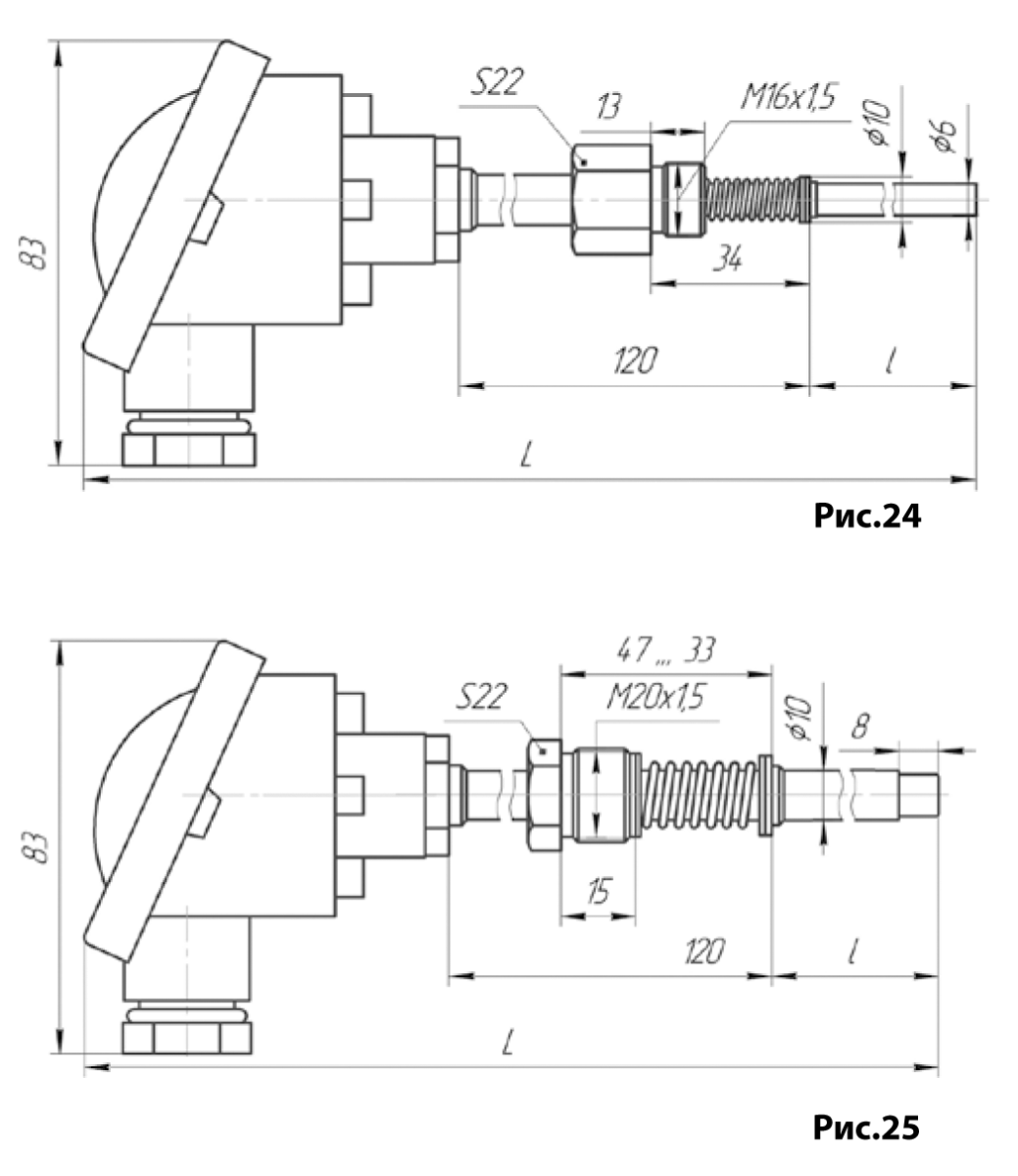Длина монтажной части l, мм: 100, 120, 160, 200, 250, 320, 400, 500, 630, 800, 1000, 1250, 1600, 2000, 2500, 3150, 4000, 5000, 6300, 8000, 10000, 12500, 14000, 16000, 18000, 20000, 25000, 30000 Для рис.19 и 20 длина монтажной части l, мм: от 160 до 30000 |