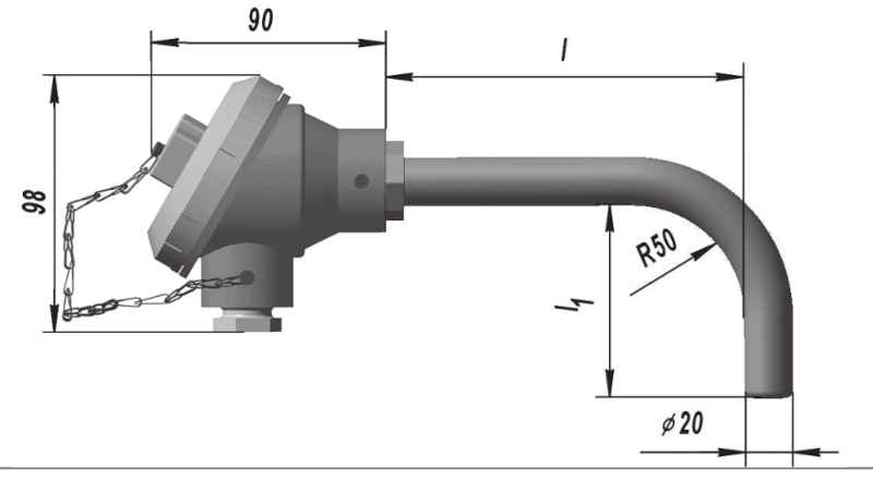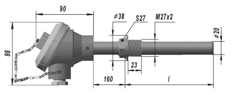 Рис.2 ТХА 9310, Ру=4,0 МПа; Штуцер неподвижный Схема соединений 2