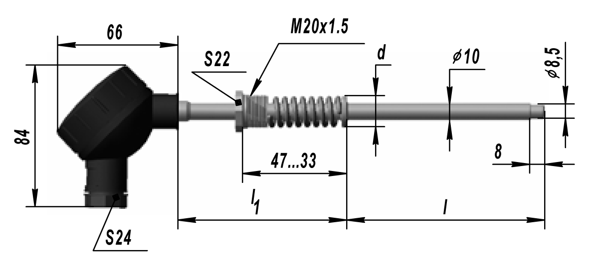 Рис.3 ТХА 9312, Ру=6,3 МПа. Штуцер подвижный (Остальное см. рис. 2) |