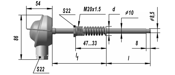 Исполнение рабочего спая – ИЗОЛИРОВАН; Материал защитной арматуры – Сталь12Х18Н10Т; Диапазон измеряемых температур -40…+600°C |