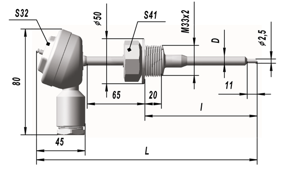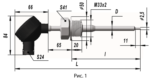 Рис. 2 ТХА 9415, Штуцер неподвижный Материал защитной арматуры – Сталь 08Х20Н14С2 |