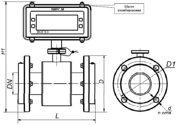 Габаритные, присоединительные и установочные размеры расходомеров ВИРС-М ПРОМ