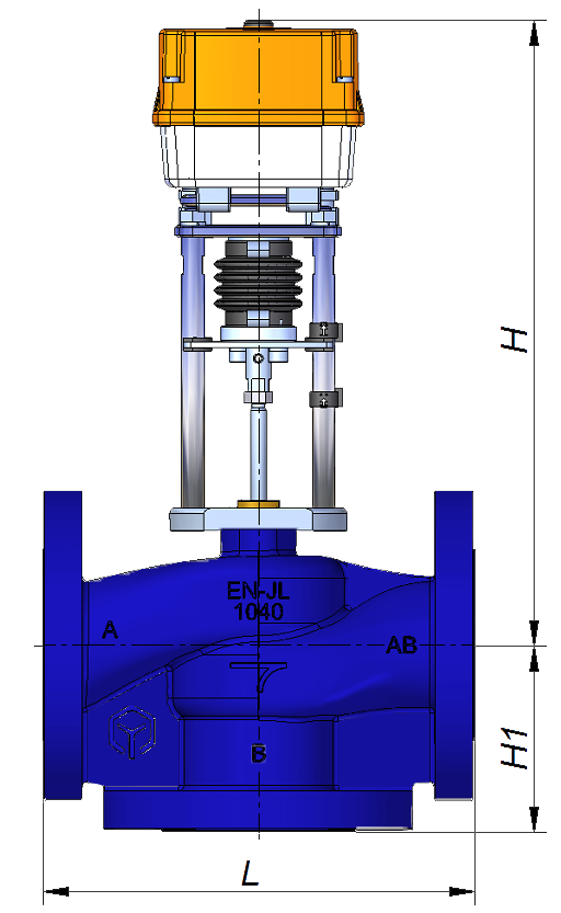 Управление клапаном осуществляется электрическим исполнительным механизмом (электропривод). Усилие, развиваемое электроприводом, передается на плунжер, который перемещается вверх и вниз, изменяя площадь проходного сечения в затворе и регулируя расход рабочей среды.