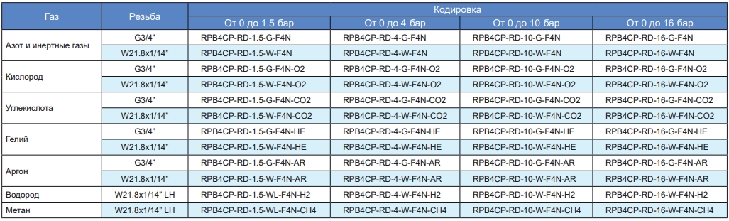 Баллонные регуляторы давления серии RPB4 предназначены для установки на стандартные баллоны с резьбами G3/4”, W21.8×1/14” и W21.8×1/14” LH. По запросу регуляторы могут быть укомплектованы выходным запорным клапаном