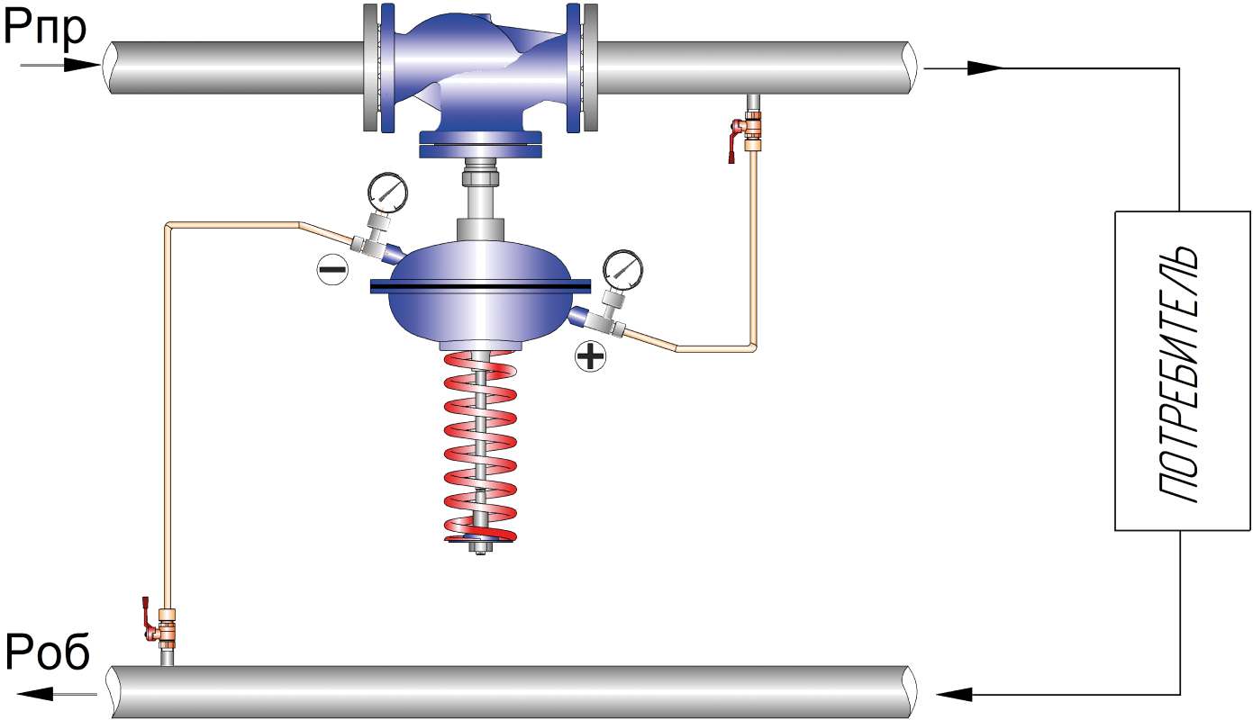 Роб – давление потока среды на подающем трубопроводе потребителя