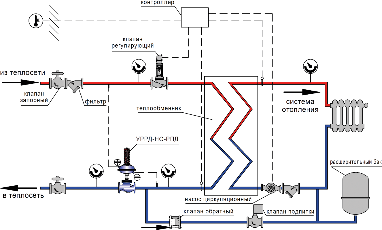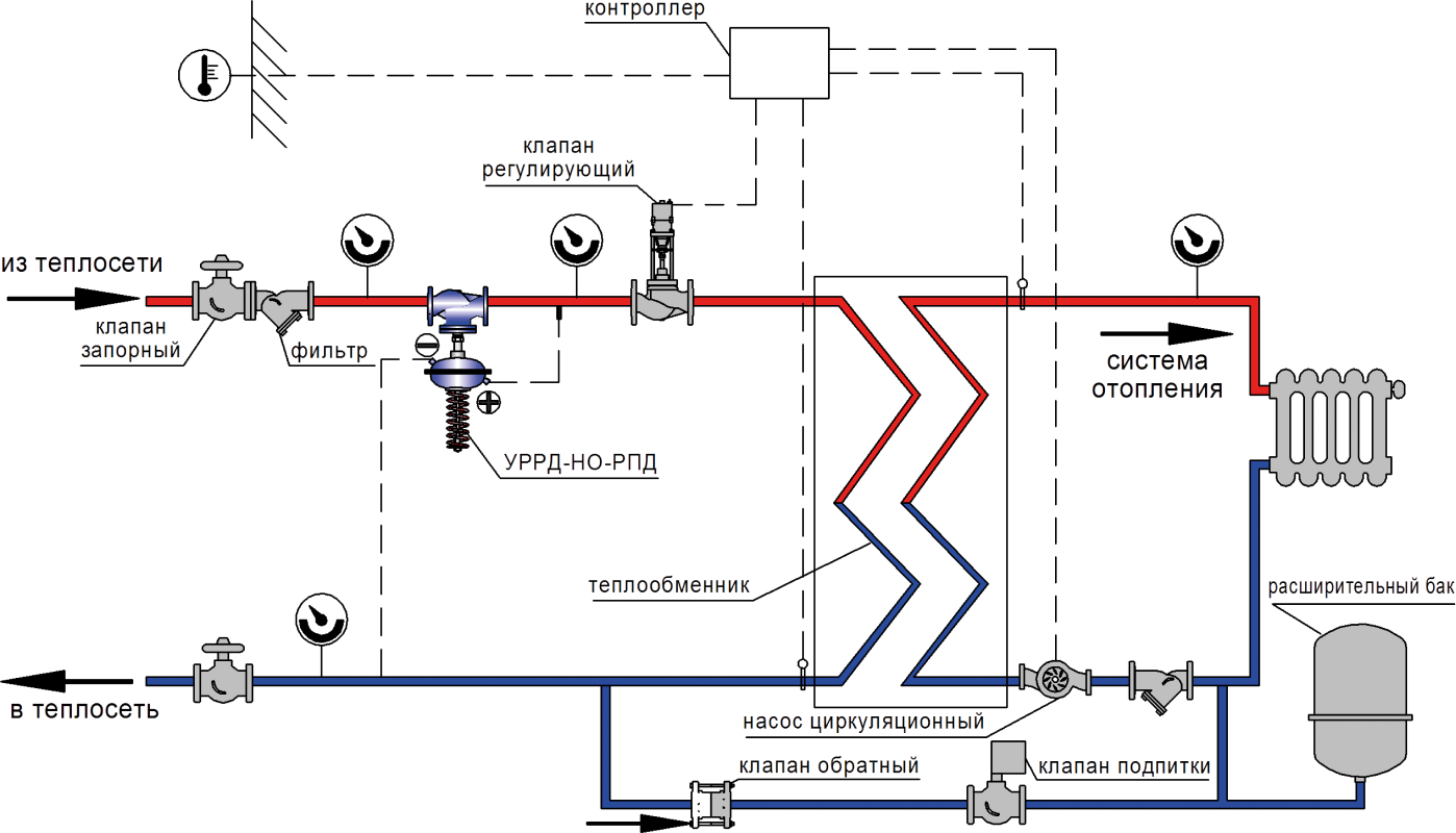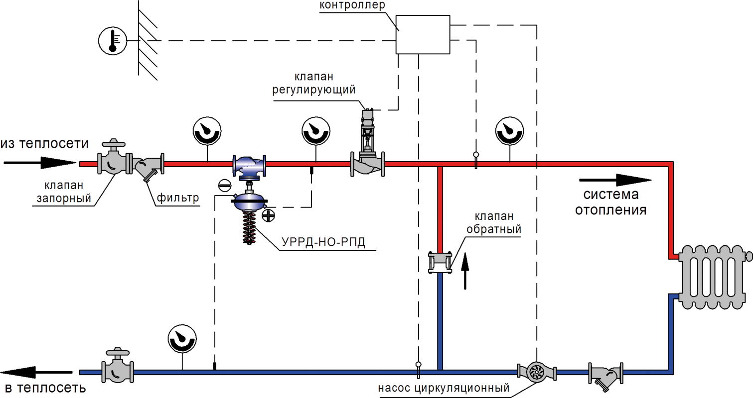 Рпр – давление потока среды на подающем трубопроводе теплосети