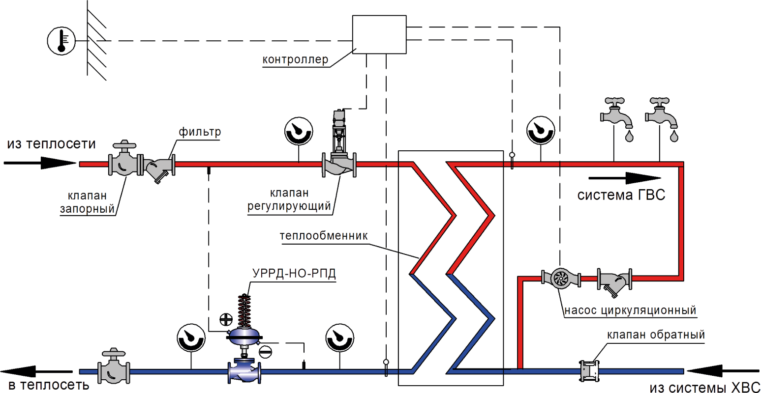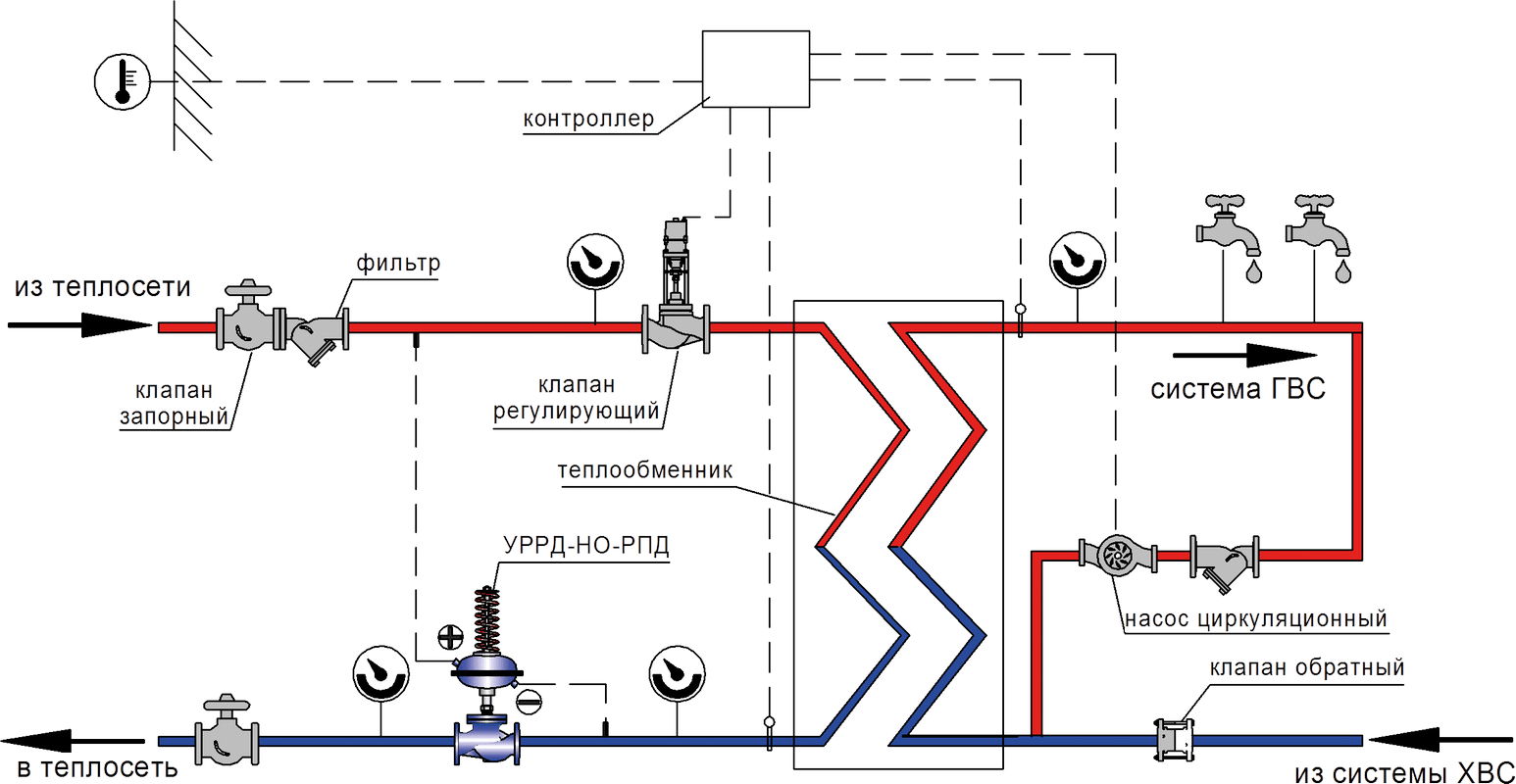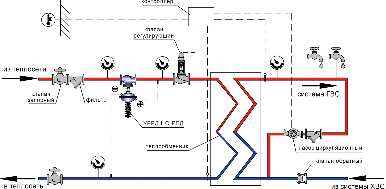 Рпр – давление потока среды на подающем трубопроводе теплосети