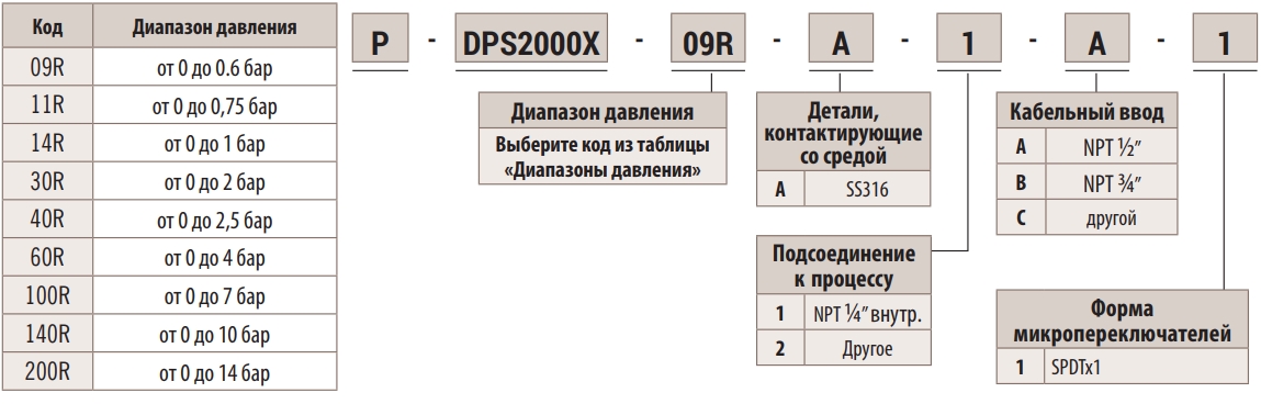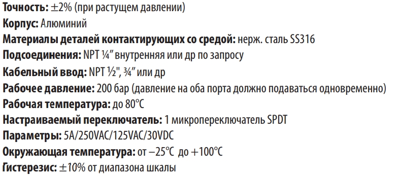 Реле P-DPS имеет порт высокого и низкого давления. Реле замыкается и размыкается благодаря магниту, крепящемуся к пистону, положение которого определяется разностью давлений и напряжением пружины.