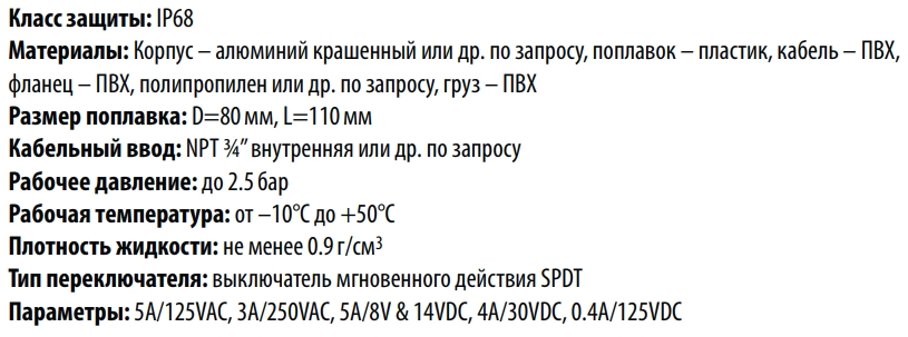 Применимы для коррозионно-активных жидкостей Настраиваемое значение уровня срабатывания.