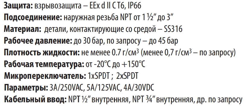Реле уровня поплавковое A-FLOW L-LXT203S-E