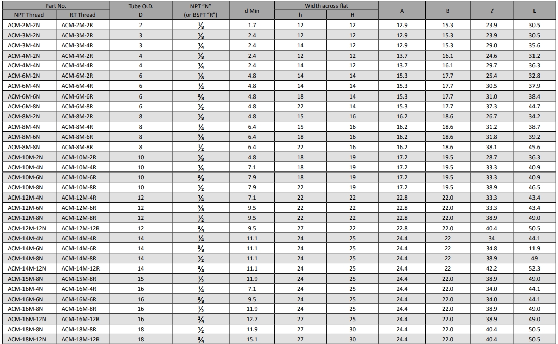 Штуцер резьбовой A-FLOW ACM-8M-M20