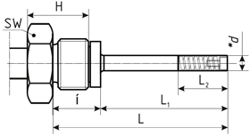Шток ТБф-222* ВАЖНО! Указана монтажная (внешняя) длина штока, которая считается от опорной поверхности и включает в себя резьбовое присоединение к процессу или другому оборудованию.