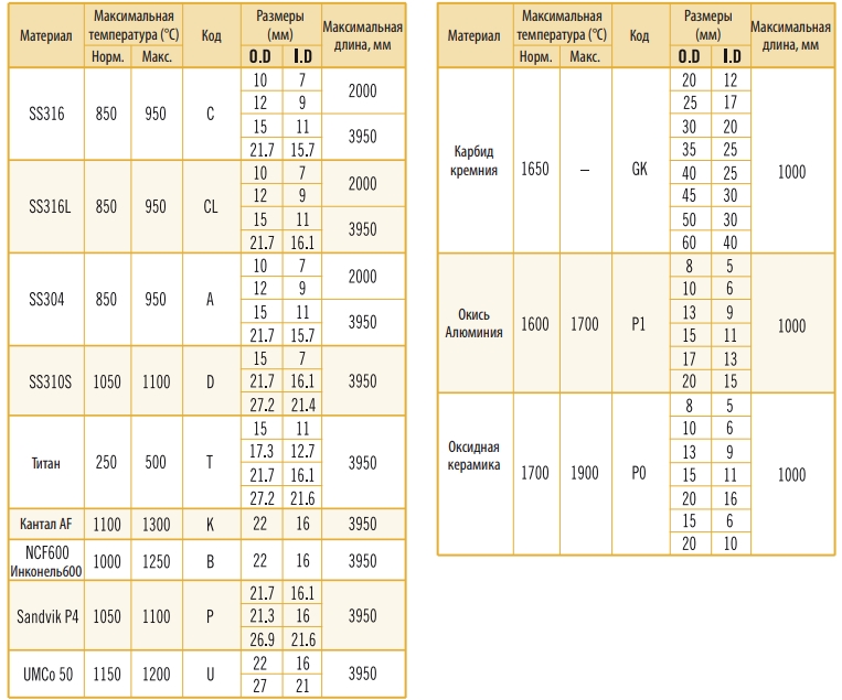 • Материал защитной гильзы: SS316, SS304 или Инконель 600 по запросу