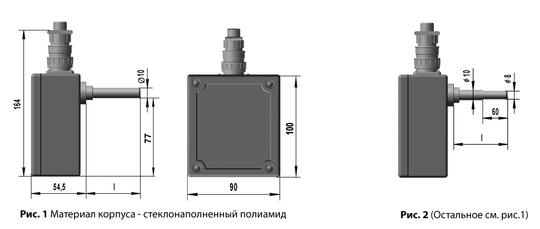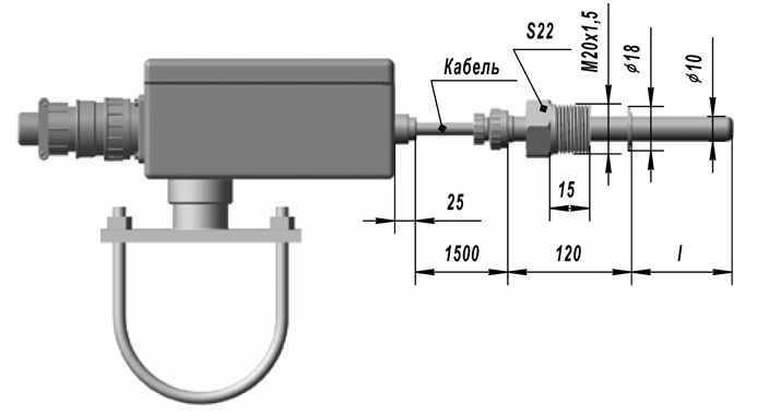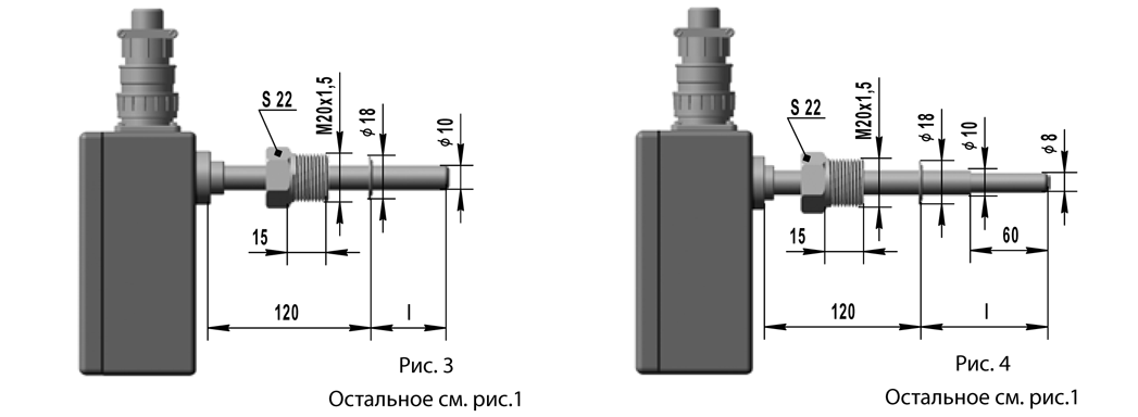 2. Конструктивное исполнение (определяет номер рисунка, длину l и диапазон измеряемых температур)