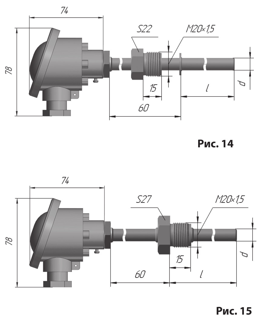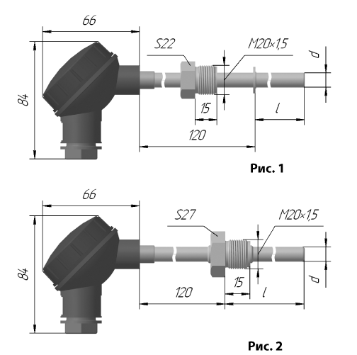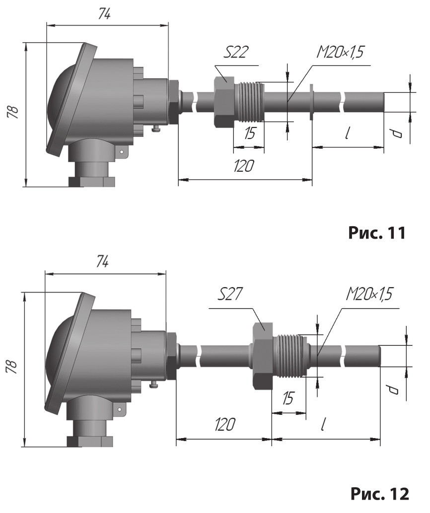 Термопреобразователи со схемой соединения 2 и 2х2 – для верхнего предела измеряемых температур +500ºС, и +600ºС изготавливаются с длиной монтажной части не более 630мм. |