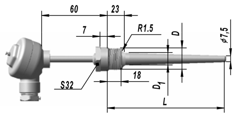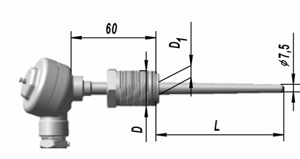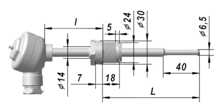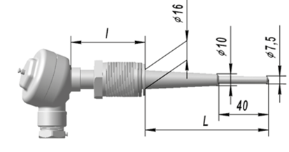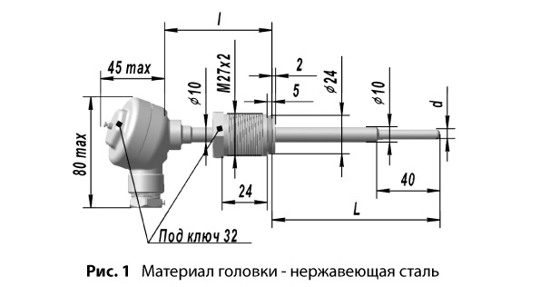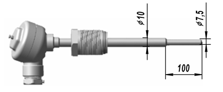 Рис.1 ТСП 9506: Материал защитной арматуры Сталь 08Х18Н10Т Диапазон измеряемых температур: -196…+500 °С |