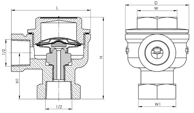H, мм | H1, мм | W, мм | W1, мм | ØD | Масса, кг |