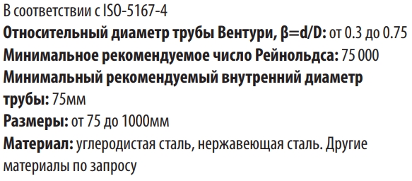 Труба Вентури представляет из себя трубу с коническими заужениями посередине. В зауженной части трубы скорость потока возрастает, а давление падает. Патрубки отбора давления находятся на входной и в зауженной частях.