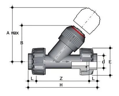 Угловой обратный клапан VR представляет собой обратный клапан с утяжеленным поршнем PP-H, который позволяет пропускать жидкость только в одном направлении.