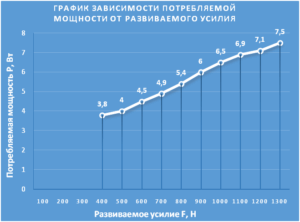 * График зависимости потребляемой мощности от развиваемого усилия.