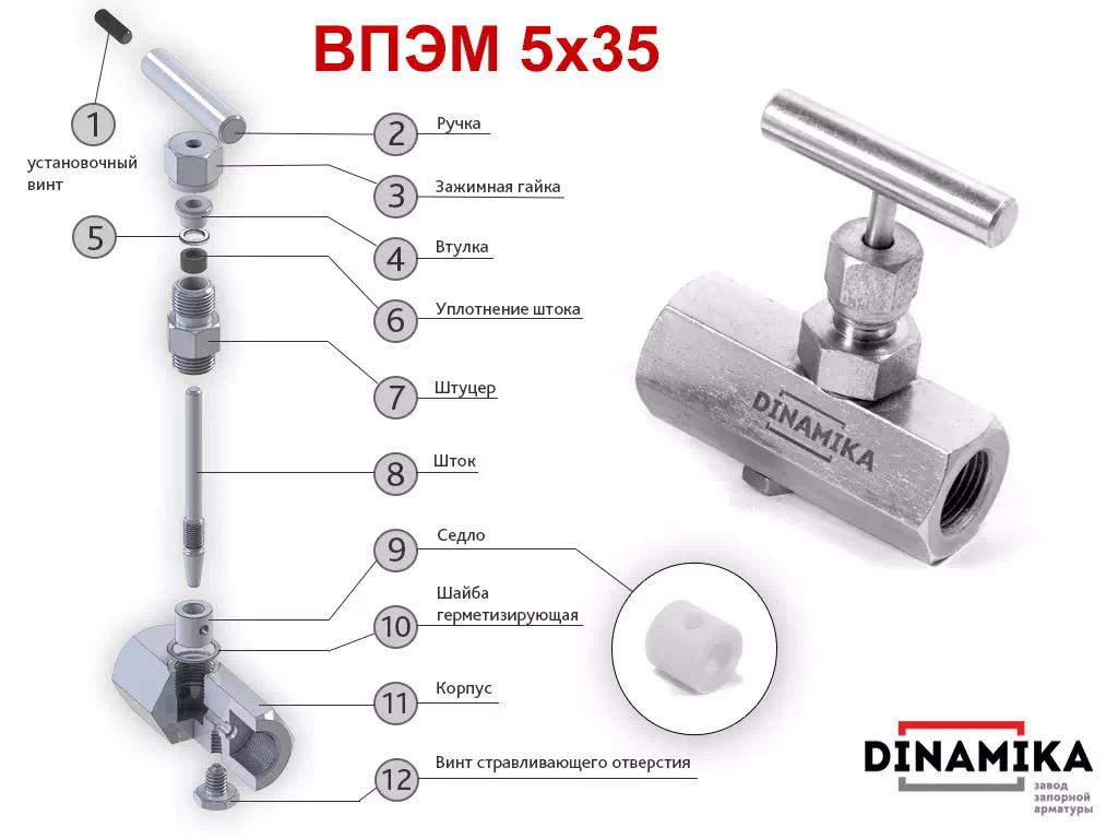 ВПЭМ имеет хоть и относится к игольчатым клапанам, но имеет особые по конструктивные отличия, что выделяет его именно узкую специализацию по применению с измерительным оборудованием.
