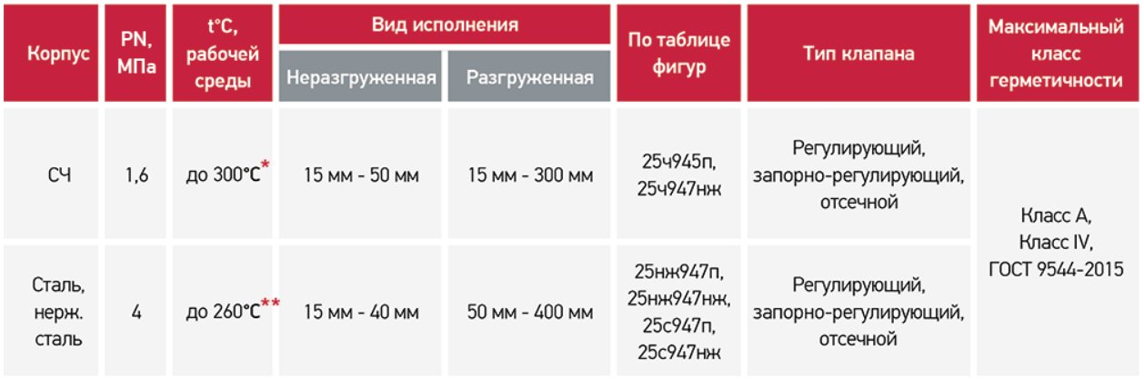 Рабочая среда: Насыщенный пар, газообразные среды и другие жидкости, не агрессивные к материалам корпуса, температурное значение которых не превышает 300°С